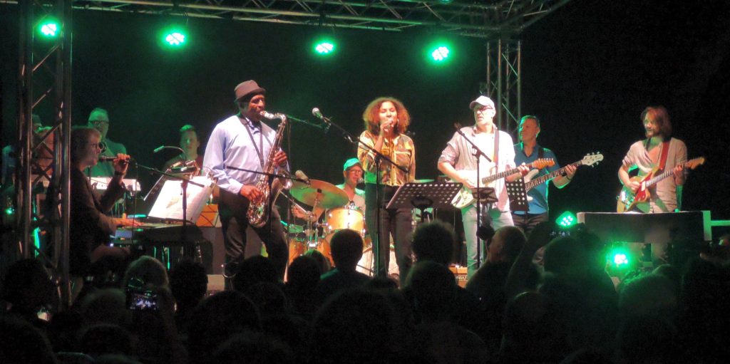 stefan huefner’s ¡ZAPPATA! Die Band lieferte eine beinhart groovende Show. Die originellen Arrangements übersetzten perfekt den kompositorisch anspruchsvollen Spielwitz des amerikanischen Bürgerschrecks in eigenständige Klanglandschaften. Bereits als die stimmgewaltige Mara Minjoli vor druckvoller Kulisse die ersten Zeilen von „Florentine Pogen“ intonierte, war nicht nur Zappa-Fans klar: Das wird ein herausragender Abend. „Stefan Huefner’s Zappata“ brillieren! Grandios inszeniert von Stefan Hüfner am Keyboard – im wahren Leben Professor für Komposition an der Folkwang-Uni –, funkelten solche Song-Perlen wie „Cocaine Decision“ oder „Camarillo Brillo“ in bezaubernder Pracht. Knackig befeuert vom auch eindrucksvoll singenden Mickey Neher am Schlagzeug, satt geerdet vom genüsslich groovenden Bassman Max Schmitz, aufgeheizt von einer feurigen Bläser-Section und immer wieder überglänzt von den Gitarristen Werner Neumann und Georg Spieß. Zappas Weggefährte steht auf der Bühne: Und dann noch das! Napoleon Murphy Brock, der in den 70ern bei Zappa spielte, kam auf die Bühne. Mit hinreißender Stimme veredelte der inzwischen 73-jährige Showman etwa „Cosmic Debris“, „Yo Mama“ und „Pound for a Brown“ mit authentischem Flair. Der Stargast griff zwischendurch auch mal zu Tenorsax und Flöte. Zum Abschluss: Tosender Jubel der Zuhörer, die von Napoleon und „Zappata“ nach zwei Stunden völlig begeistert und überwältigt waren.